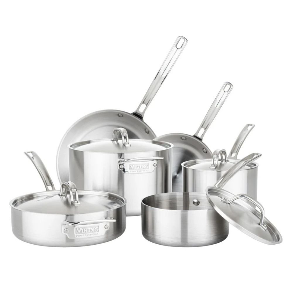 & Free ShippingA professional-grade 18/10 stainless steel set designed for chefs. Features tri-ply construction for rapid, even heating and a mirror-polished finish that stays beautiful for years.